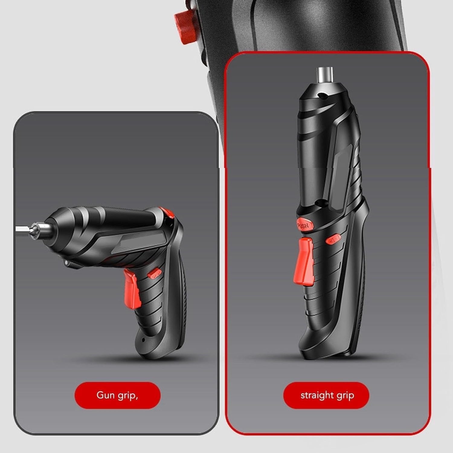 • 【90° Rotation Handle】① 2 Hand-held Shapes: Hold the electric screwdriver with one hand and press the button at the top of the turn with your thumb, and rotate to make it straight with the other hand. Ideal for screwing into narrow spaces and blind holes. ② Forward/Reverse button allowing the screwdriver to rotate between clockwise (forward) and counter-clockwise (reverse).