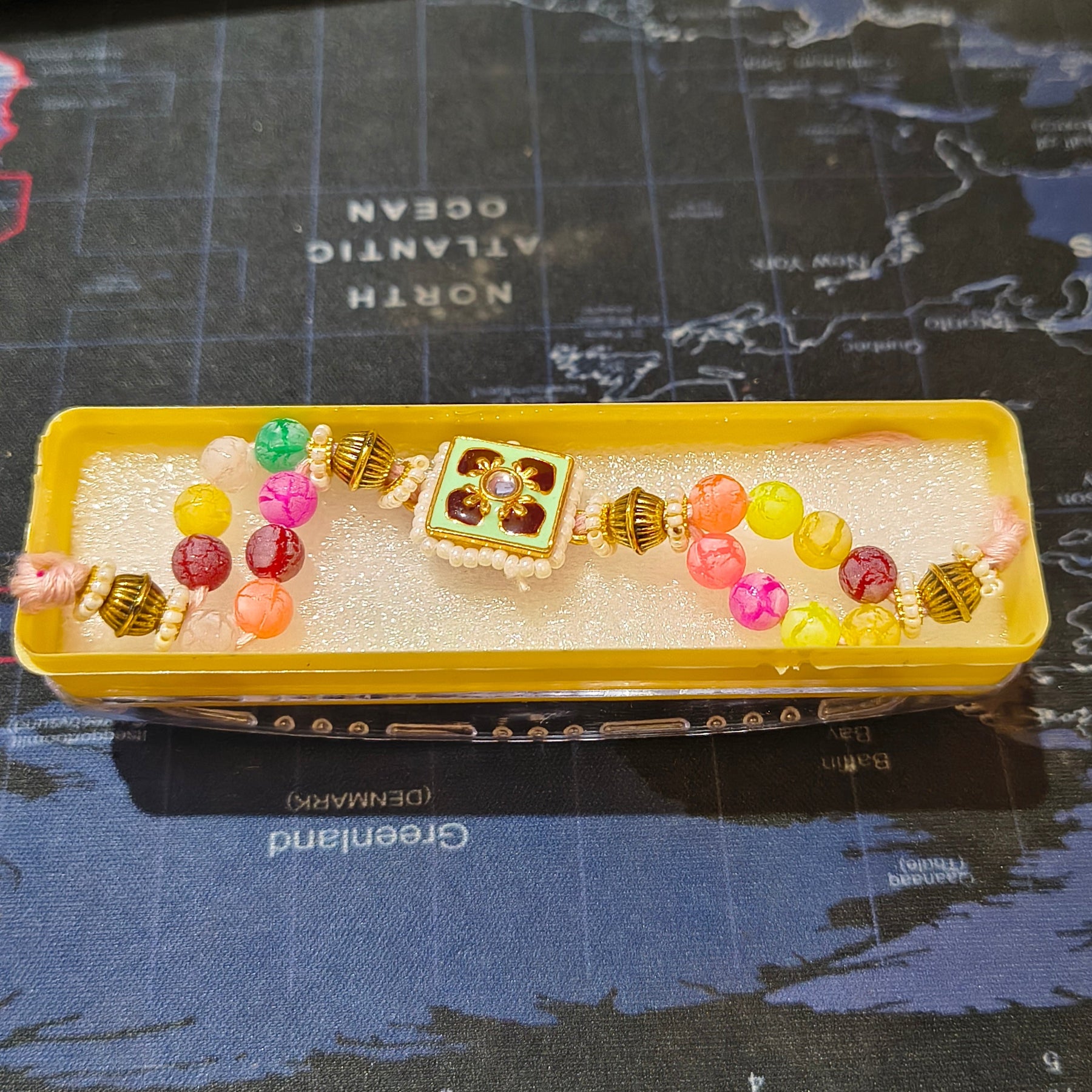 Celebrate Raksha Bandhan with love and elegance by gifting your Bhabhi a beautifully Premium Hand-made Rakhi. Crafted with care and intricate detailing, this rakhi is designed to honor the special bond between a brother and his sister-in-law. Featuring high-quality materials and a unique, handcrafted design, it combines traditional values with a touch of modern sophistication. The Premium Hand-made Bhabhi Rakhi is not just a symbol of love, but also a gesture of warmth, blessings, and prosperity for the woman who’s a cherished part of your family. Make this Raksha Bandhan unforgettable for your Bhabhi with this exquisite piece.