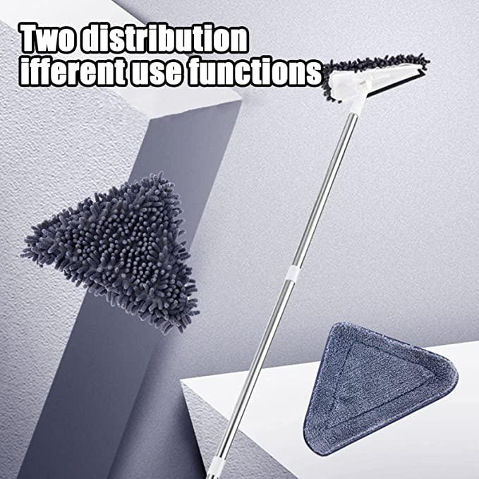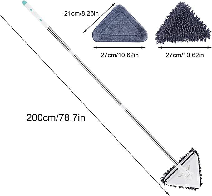 360 degree rotatable: triangular cleaning mop has a triangular design and the mop head can be rotated 360 degrees. This means that every corner can be easily cleaned without leaving any dead.